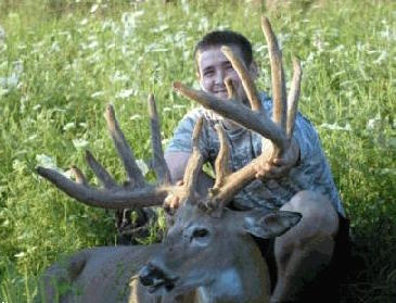 He is unbelievably impressive up close and in person. In velvet he had an unheard of 227inch NET TYPICAL SCI and a 213inch NET TYPICAL B.C. Shock N Awe had a 31 1/2inch beam and 24 1/2inch inside spread. His main frame score was 134 1/8inch and 101inch of Tines. This deer has it on his head and in his background.